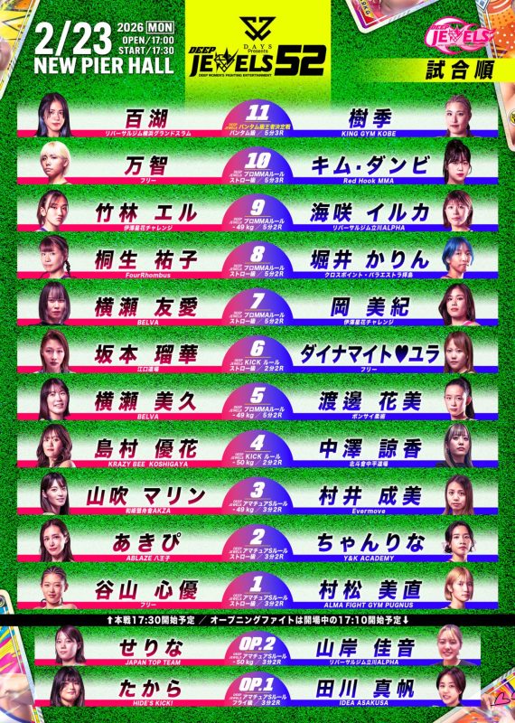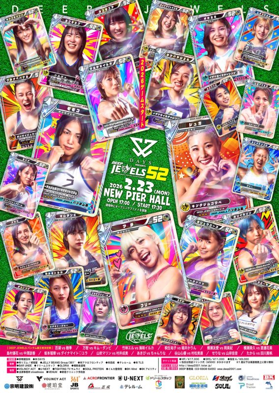 2026年2月23日(月)にニューピアホールで開催する『DAYS Presents DEEP JEWELS 52』の試合順と配信情報をお知らせいたします。