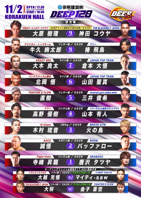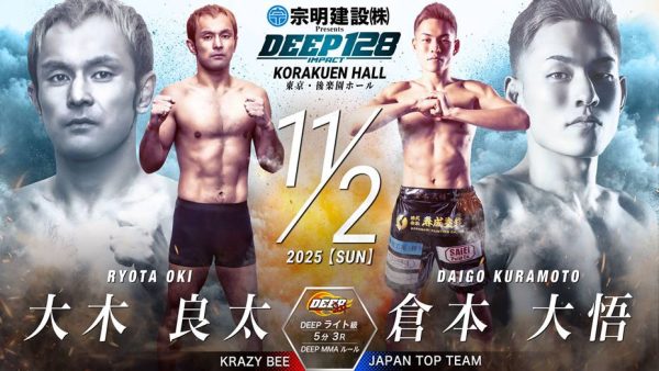 2025年11月2日(日)に後楽園ホールで開催する『宗明建設Presents DEEP 128 IMPACT』の試合順と配信情報をお知らせいたします。