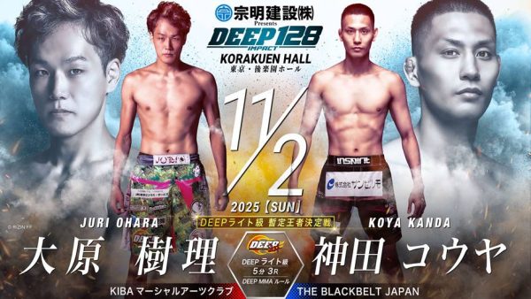 メインはBLACK COMBATとDEEPの元ライト級王者で韓国で人気の大原樹理が元フェザー級王者の神田コウヤとライト級暫定戦に!
