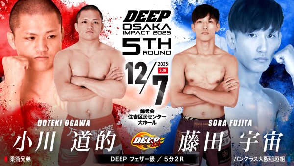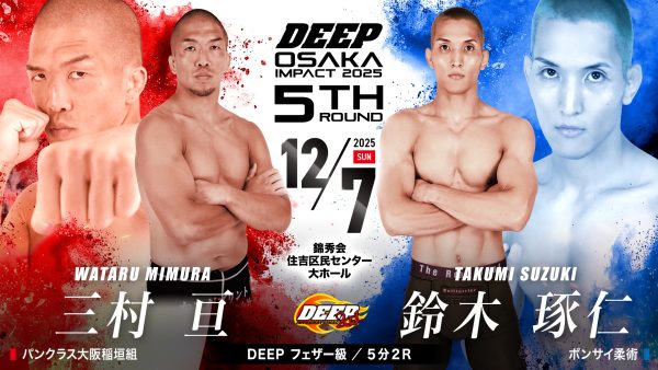 メインは5試合連続でフィニッシュ勝利している延命そらと北九州の喧嘩屋・牧野滉風のストライカー対決にセミは稲垣組の特攻隊長の三村亘がフェザー級に階級を下げて3連勝中の鈴木琢仁を迎え撃つなど今年最後のDEEP OSAKA IMPACTの試合順が決定!!