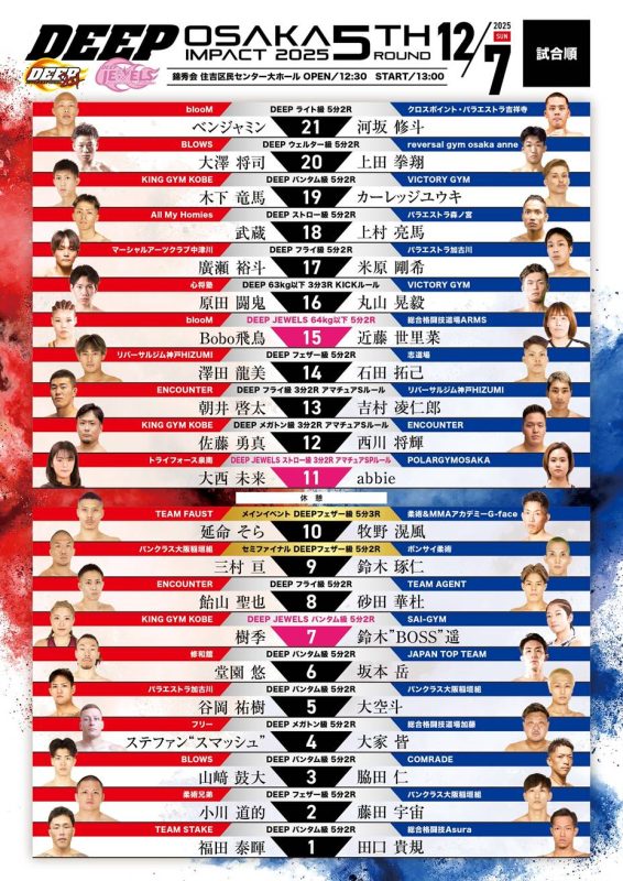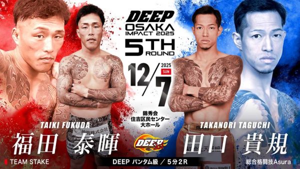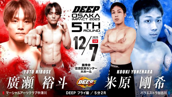 2025年12月7日(日)に錦秀会 住吉区民センター大ホールで開催する『DEEP OSAKA IMPACT 2025 5th ROUND』の試合順と配信情報をお知らせいたします。
