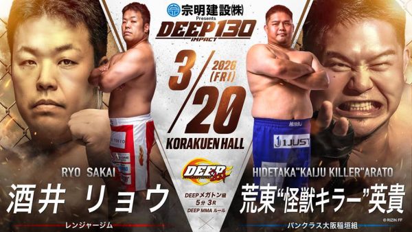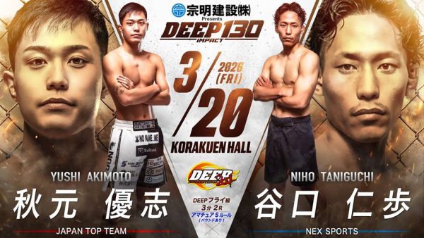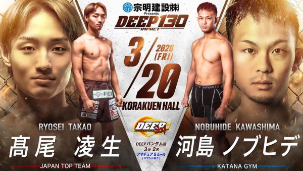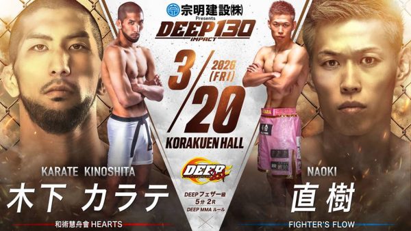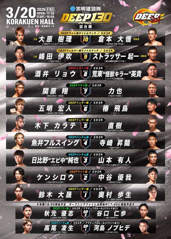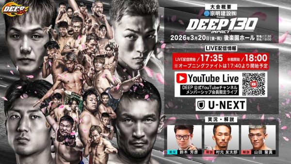 さて、2026年3月20日(金)に後楽園ホールで開催する『宗明建設Presents DEEP 130 IMPACT』の試合順と配信情報をお知らせいたします。