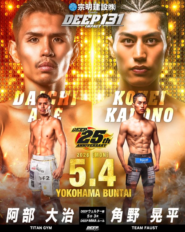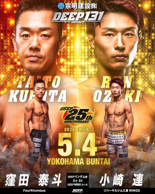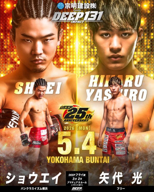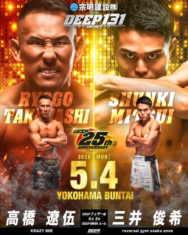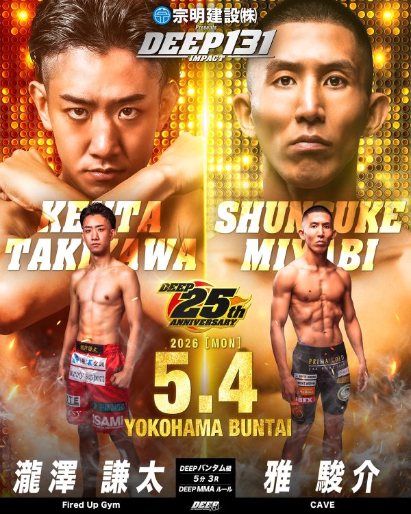 2026年5月4日(月・祝)に横浜BUNTAIで開催する『宗明建設Presents DEEP 131 IMPACT』の追加対戦カードをお知らせいたします。