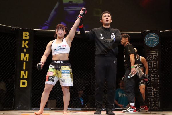 ※朝井選手は契約体重より1.7kg重かったため、もし朝井選手が勝った場合はノーコンテスト扱いとなり、杉選手が勝った場合は公式記録として認められます。