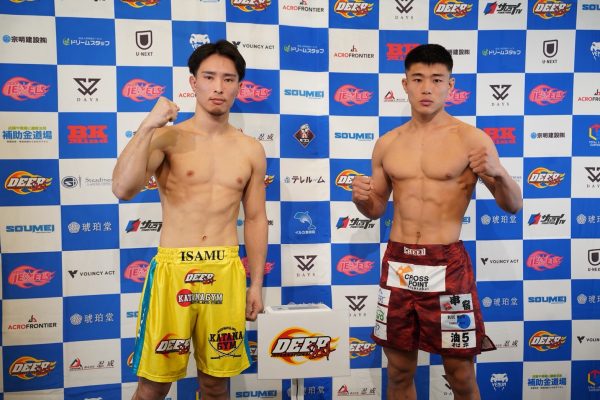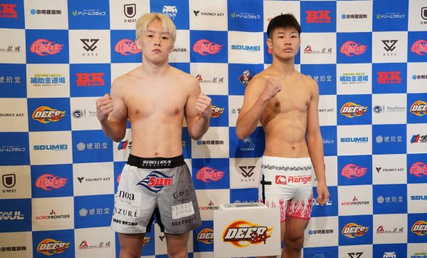 20歳の元キック王者の杉山空が越智晴雄に挑むストロー級タイトル戦に小崎連と中務太陽のバンタム級期待の新鋭同士が激突などDEEP TOKYO IMPACT 2025 6th ROUNDの前日計量が本日開催!