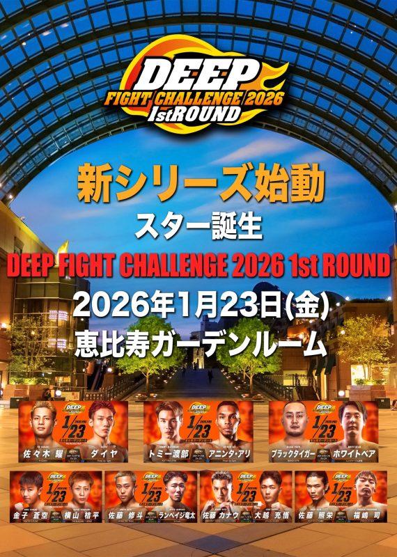 2026年1月23日(金)に恵比寿ガーデンルームで『DEEP FIGHT CHALLENGE 2026 1st ROUND』を開催する事が決定いたしました。