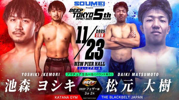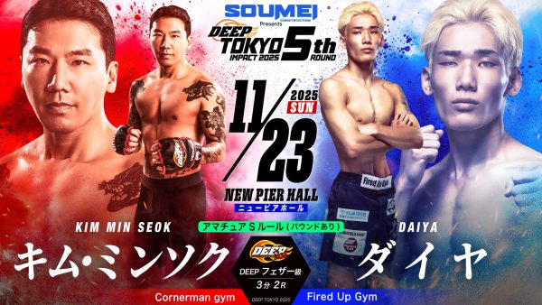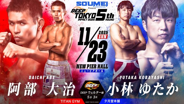 3連敗中の元DEEP王者の阿部大地はACFベトナム大会で勝利した小林ゆたか相手に再起戦、初参戦の元GRACHANフライ級王者の御代川敏志がフューチャーキングトーナメントを制した斎藤璃貴と対戦などDEEP TOKYO IMPACT 2025 5th ROUNDのチケットは今週末から発売始!